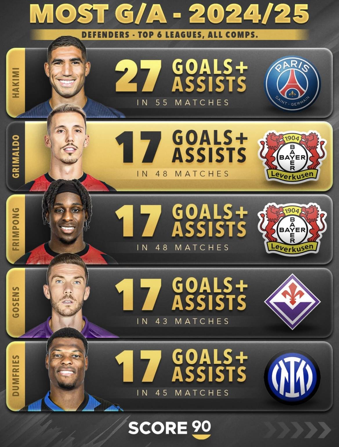 ดูที่อัชราฟ ในฤดูกาล 2024/25 Ashraf เอาชนะ Grimardo แต่ Ashraf อยู่ในแถวบนสุดสำหรับการระบาดในปีเดียวในรายชื่อสามปีนี้ กริมมาร์โดอยู่แถวหน้ามาสามปีแล้ว ในตำแหน่งกองหลังซึ่งบริโภคอย่างมหาศาล ปริมาณทองคำในระยะยาวและมั่นคงนั้นสูงกว่าจุดสูงสุดของฤดูกาลเดียวมาก