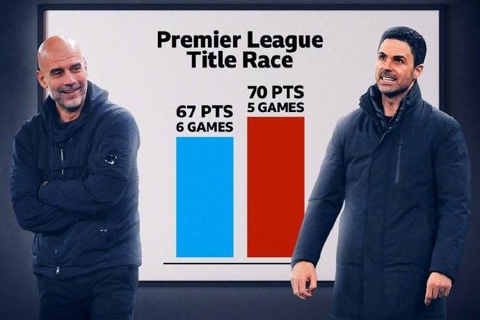 เหลืออีก 5 รอบ ลีกทั้งสองทีมไม่ง่ายเลย แมนเชสเตอร์ ซิตี้ ต้องแข่งขันกันหลายเกมติดต่อกัน และแมตช์แต่งหน้าต้องทำให้วันที่สิ้นสุด และทุกเกมจะต้องทำให้ดีที่สุด อาร์เซนอลต้องเผชิญกับโรงไฟฟ้าอย่างนิวคาสเซิ่ลในลีก แต่ยังทำให้การแข่งขันแชมเปี้ยนส์ลีกเสียสมาธิ ความกดดันของการต่อสู้สองบรรทัดสามารถจินตนาการได้