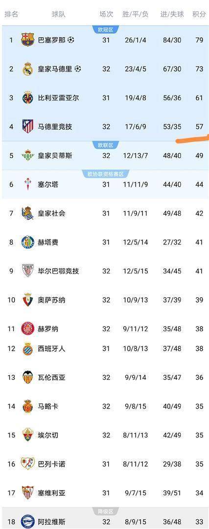 แอตเลติโก มาดริด ทำแต้มได้ 57 แต้ม ยังคงเป็นที่สี่ อย่างไรก็ตาม พวกเขาได้เปรียบ 8 แต้มก่อน Royal Betis ที่ 5 และที่นั่ง Champions League ยังคงมั่นคงในขณะนี้ Royal Betis อยู่ในอันดับที่ห้าด้วยคะแนน 49 คะแนน Hertafe และ Celta ทั้งคู่ทำคะแนนได้ 44 คะแนน อันดับที่หกและเจ็ดตามลำดับ