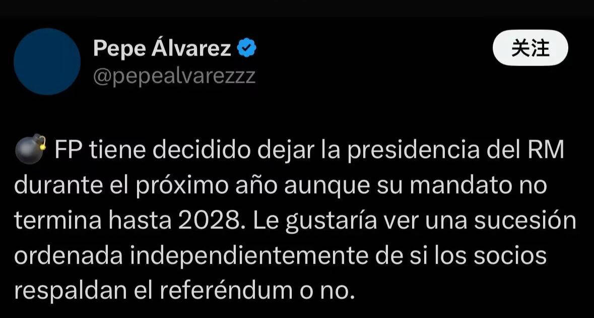 ในช่วงไม่กี่วันที่ผ่านมา สื่อกระแสหลักของสเปนอย่าง Cadena SER ได้เปิดเผยว่า เรอัล มาดริด กำลังจะเผชิญกับการเปลี่ยนแปลงครั้งใหญ่ โดยสโมสรเตรียมดำเนินการเปลี่ยนแปลงสำคัญหลายประการในช่วงซัมเมอร์หน้า นี่ไม่เพียงแต่เป็นสัญญาณของการปรับโครงสร้างครั้งใหญ่ภายในทีมผู้บริหารของสโมสรเท่านั้น แต่ยังเป็นการสิ้นสุดยุคสมัยหนึ่งอีกด้วย – เนื่องจากประธานสโมสร ฟลอเรนติโน เปเรซ ได้ตัดสินใจอย่างเป็นทางการที่จะลงจากตำแหน่งในช่วงซัมเมอร์หน้า