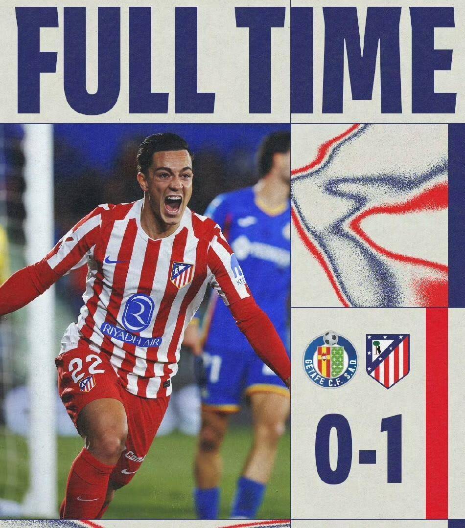 การแข่งขันนัดเยือนของแอตเลติโก มาดริด กับเกตาเฟ่ ก็เต็มไปด้วยความดราม่าไม่แพ้กัน ประตูเดียวของเกมเกิดขึ้นในนาทีที่ 82 เมื่อราสปาโดรี ตัวสำรอง เปิดบอลจากริมเส้น ซึ่งดอมิงกอส ดูอาร์เต้ กองหลังเกตาเฟ่ สกัดบอลเข้าประตูตัวเองโดยไม่ได้ตั้งใจขณะพยายามเคลียร์บอล อัตเลติโกคว้าชัยชนะ 1-0 ทำให้พวกเขาชนะติดต่อกันเป็นนัดที่ 5 ขณะที่เรอัล มาดริด เสมอ 2-2 ทำให้พวกเขาขึ้นนำเป็นจ่าฝูงอีกครั้ง ตารางคะแนนลาลีกาล่าสุดแสดงให้เห็นว่าทีมอันดับ 4 อันดับแรกมีคะแนนห่างกันเพียง 4 คะแนนเท่านั้น