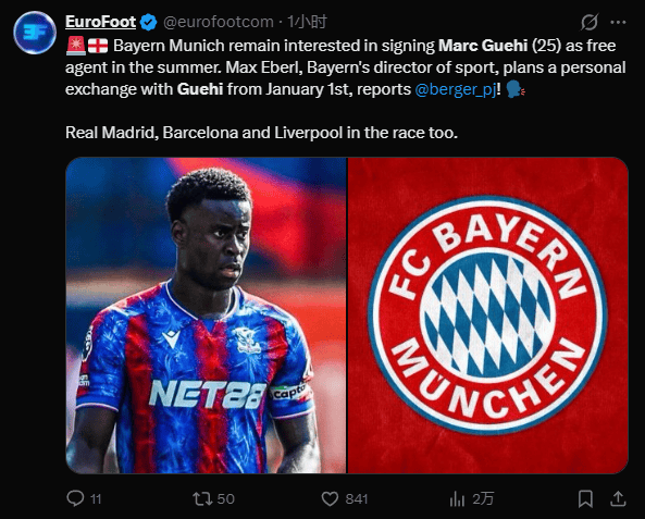 บาเยิร์น มิวนิค เล็งคว้า เกย์ ในช่วงตลาดซื้อขายนักเตะฤดูหนาว ท่ามกลางความสนใจจาก ลิเวอร์พูล เป๊ป กวาร์ดิโอล่า ก็สนใจเซ็นสัญญากับกองหลังตัวกลาง แม็กซ์ เอเบิร์ล ของคริสตัล พาเลซ