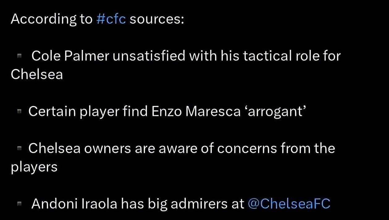 เพื่อความยุติธรรมแล้ว รากฐานของทีมเชลซีนั้นยอดเยี่ยมอย่างไม่มีที่ติ กำแพงป้องกันที่แข็งแกร่งได้ถูกสร้างขึ้นมานานแล้ว ขณะที่ปัญหาการขาดแคลนกำลังยิงในฤดูกาลที่แล้วได้ถูกแก้ไขอย่างเฉพาะเจาะจงผ่านการเซ็นสัญญาในช่วงฤดูร้อน การเดินทางที่ประสบความสำเร็จสู่แชมป์สโมสรโลก ซึ่งจบลงด้วยชัยชนะเหนือปารีส แซงต์-แชร์กแมง ได้ส่องแสงเหมือนเพชรเม็ดงาม แสดงให้เห็นว่าทีมนี้มีความสามารถที่จะไปถึงจุดสูงสุดของฟุตบอลระดับเอลิตความลึกของทีมสำรองยิ่งเติมเต็มความหวังอันสูงส่งของแฟนๆ สำหรับฤดูกาลนี้ อย่างไรก็ตาม ความเป็นจริงอันโหดร้ายของผลการแข่งขันในฤดูกาลใหม่ได้สาดน้ำเย็นจัดใส่ความกระตือรือร้นทั้งหมดนั้น และผู้จัดการทีม มาเรสกา คือผู้ที่ถือถังน้ำนั้นอยู่โดยไม่มีข้อสงสัย