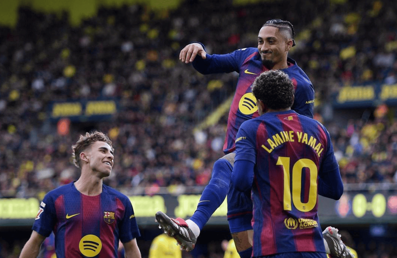 2-0! คลาสของ Flick: บาร์เซโลน่าถล่มชนะติดต่อกันเป็นครั้งที่เจ็ด ขึ้นนำเป็นจ่าฝูง ขณะที่เรอัล มาดริดตามหลัง_บียาร์เรอัล_ราฟินญ่า_ยาร์โมเลนโก้