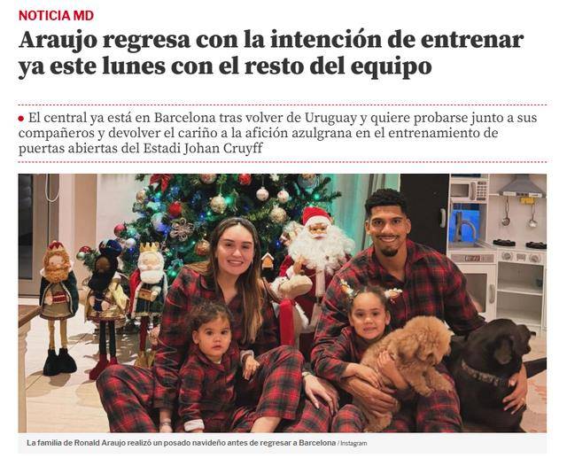Mundo Deportivo รายงานว่า บาร์เซโลนาได้สิ้นสุดช่วงพักคริสต์มาสแล้ว โดยนักเตะทั้งหมดกลับมาฝึกซ้อมในวันจันทร์นี้ อาราอูโฮจะกลับมาที่สนาม Johan Cruyff Arena เพื่อร่วมฝึกซ้อมต่อหน้าแฟนบอล 6,000 คน
