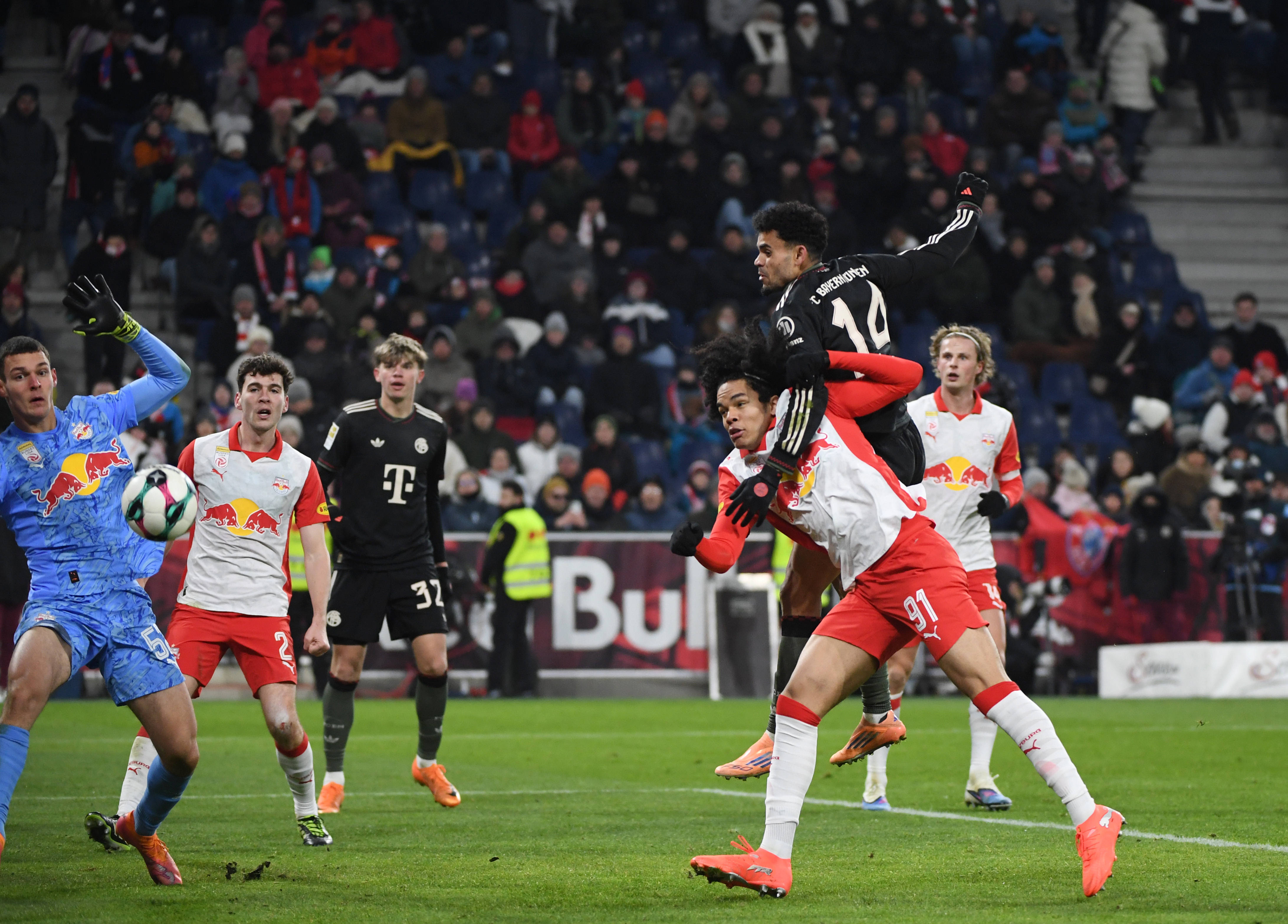 เมื่อวันที่ 6 มกราคม ดิอาซ นักเตะบาเยิร์น มิวนิค (ด้านบน) พยายามโหม่งลูกบอลระหว่างการแข่งขัน ภาพโดย เหอ ฉานหลิง, สำนักข่าวซินหัว
